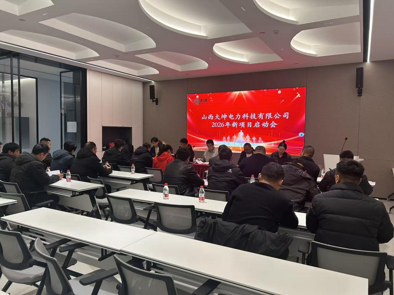 律回春渐,新元肇启。随着新春佳节的圆满落幕,山西大坤电力科技有限公司正式吹响了全年工程建设的奋进号角。2026年3月,公司隆重召开新项目启动会,全体工程管理、技术骨干及核心岗位人员齐聚一堂,统筹部署开年复工及全年重点工程推进工作,以实干姿态开启高质量发展新征程。